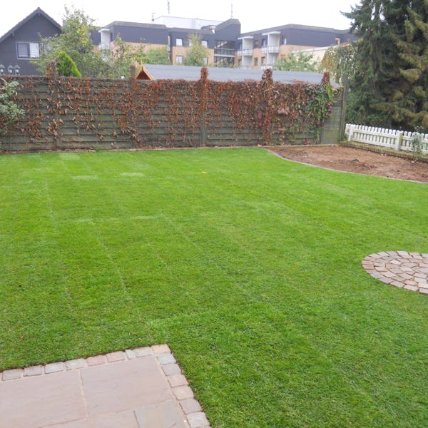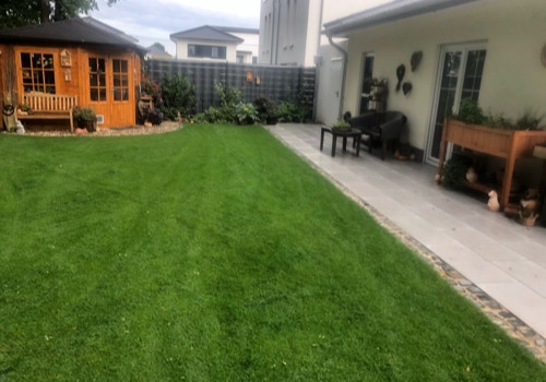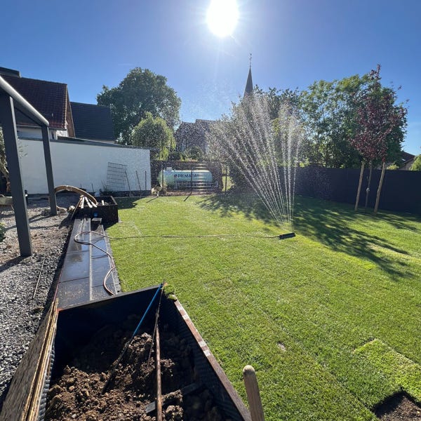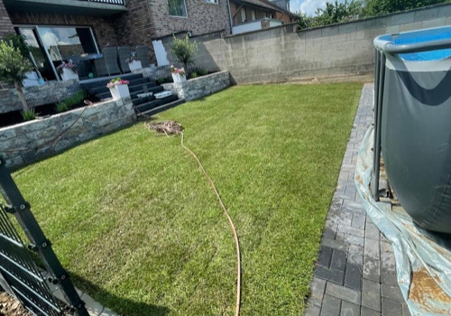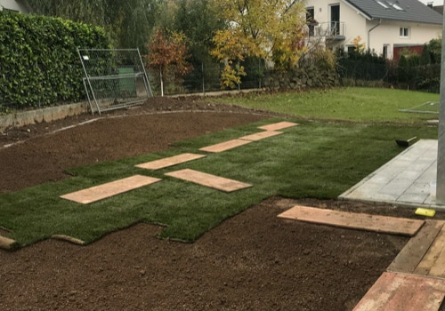 Für schnelle Ergebnisse verlegen wir hochwertigen Rollrasen, der nach