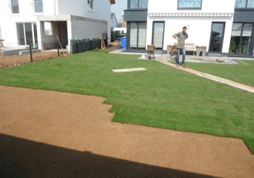 Für schnelle Ergebnisse verlegen wir hochwertigen Rollrasen, der nach